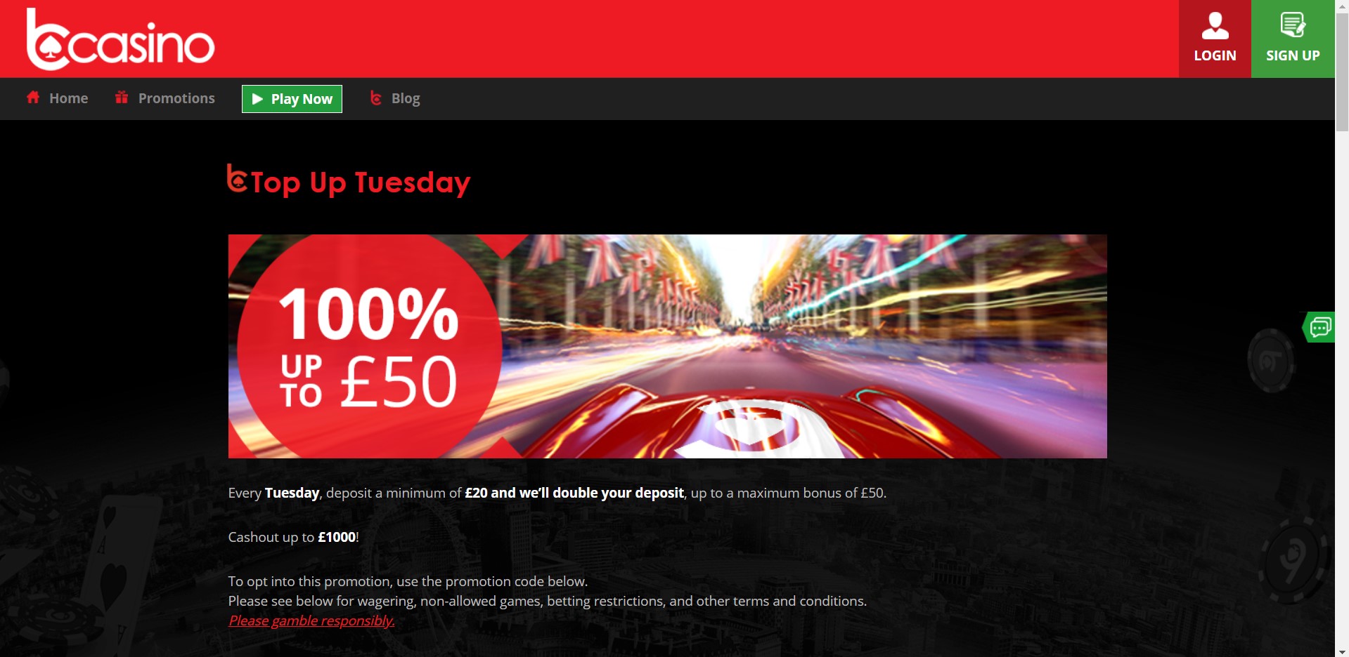The bonus will be released to the player’s cash balance when 3x the deposit amount has been wagered with their cash balance. The received bonus will expire after 7 days.
