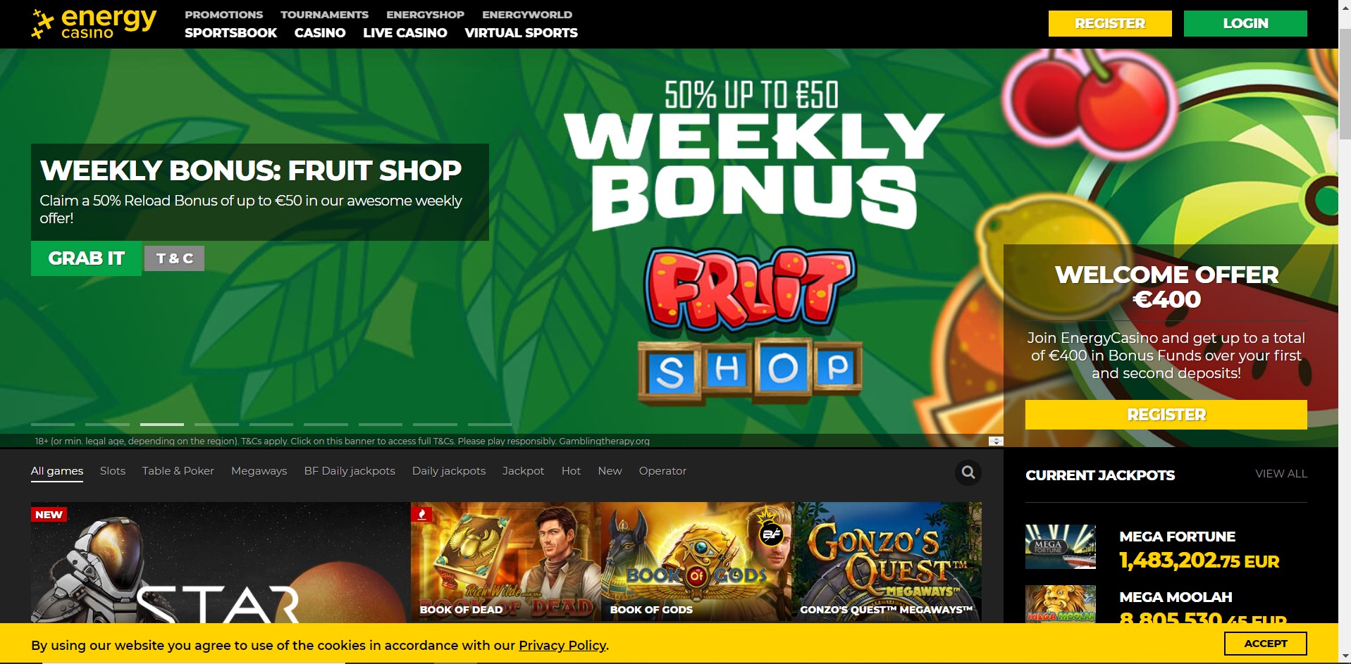 The minimum deposit is €10. The Welcome Bonus must be wagered 35x in Casino before withdrawal can be requested on the deposit, bonus and/or winnings. The 100 Free Spins are available exclusively on Starburst, Mega Fortune Dreams, Gonzo’s Quest or Twin Spin.