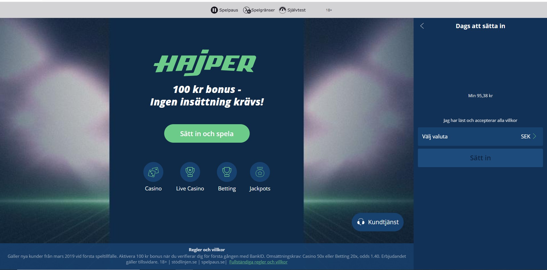 Min deposit is EUR 10. The bonus received when the Player makes his/her first deposit to the Website has a wagering requirement of forty (40) times the sum of the received deposit + bonus.