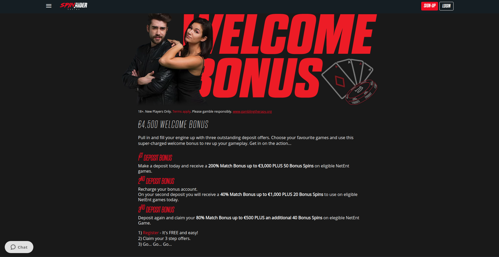 CacherDépôt minimum de €20. Mise maximum de €5. Les tours gratuits uniquement sur les jeux sélectionnés et doivent être utilisés dans les 10 jours. Gains du tour gratuit crédités sous forme de fonds bonus et plafonnés à €20. Les fonds de bonus doivent être utilisés dans les 30 jours, sinon tout bonus inutilisé sera annulé. Cette offre vous donne le bonus suivant, 200% égal à €500 sur votre premier dépôt plus 50 tours gratuits, 25% égal à €800 sur votre deuxième dépôt plus 25 tours gratuits et 50% équivalant à €500 sur votre troisième dépôt plus 20 tours gratuits. Les fonds bonus sont séparés des fonds en argent réel, et l'exigence de mise du montant total des fonds bonus, des dépôts et des tours gratuits est de x40.