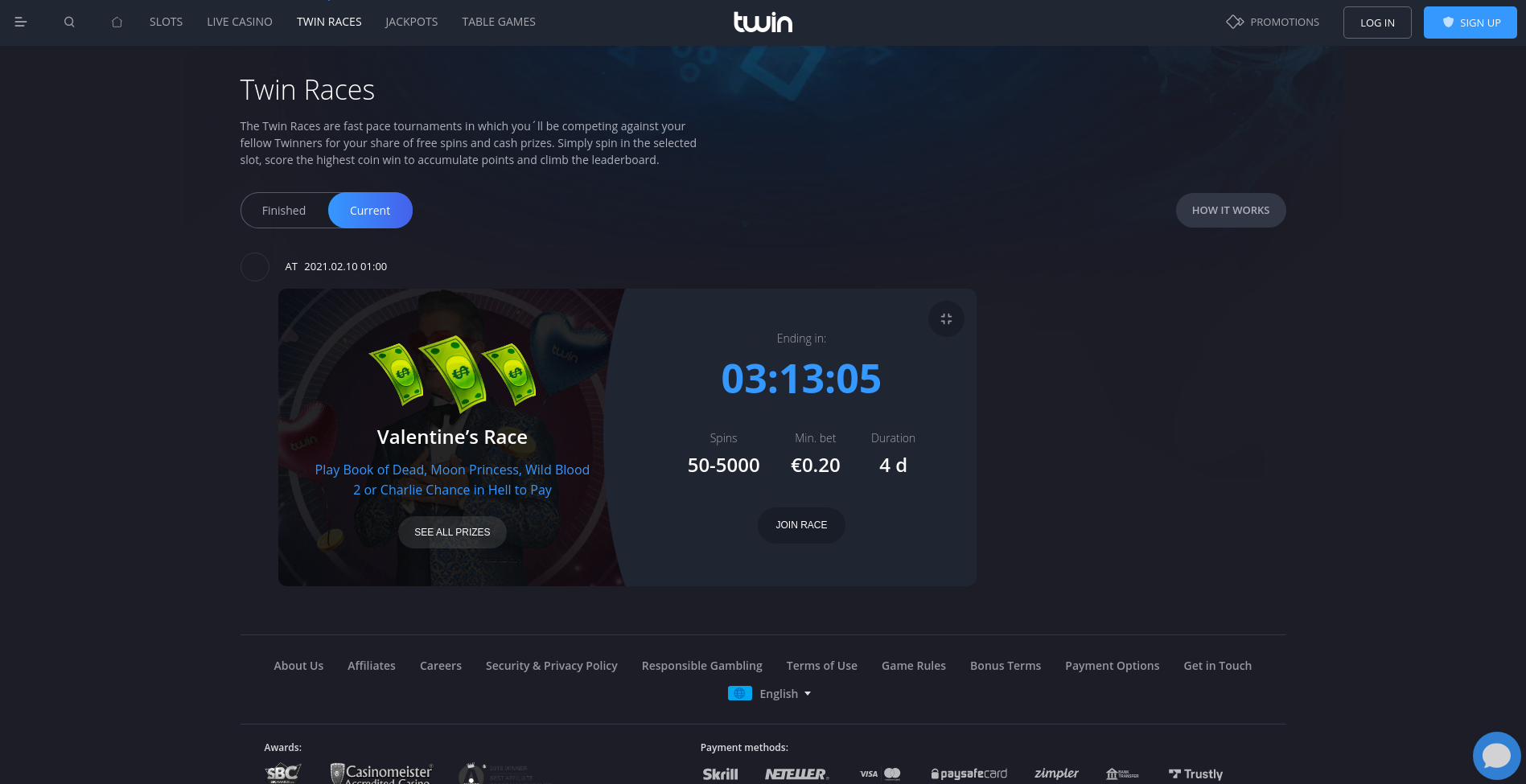 Min. deposit: €10, max. Bonus €50. Game: Book of Dead, Spin Value...